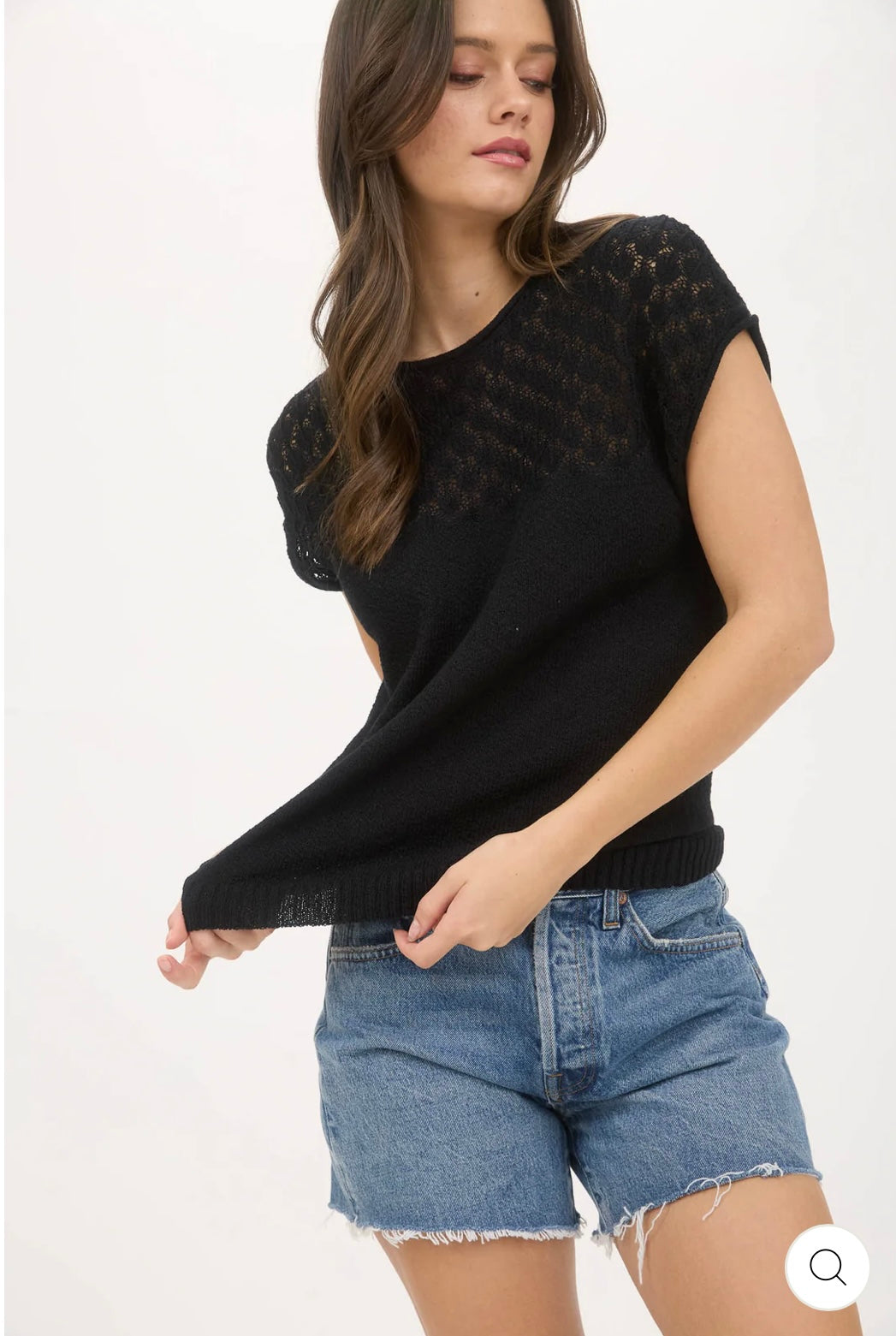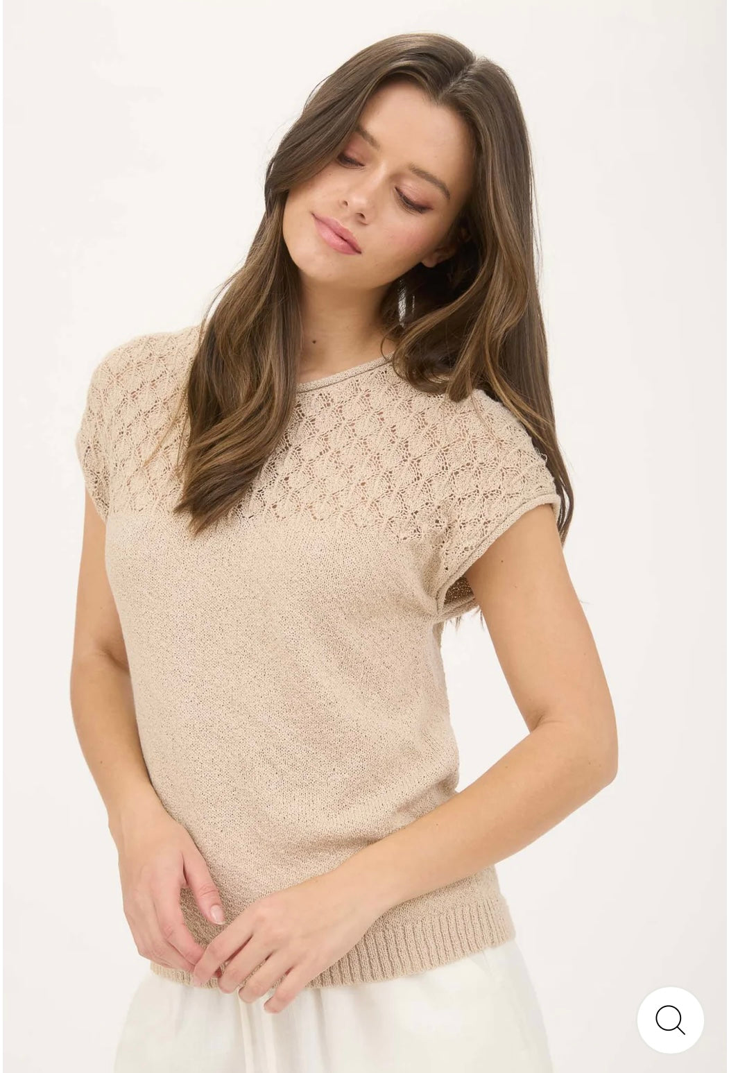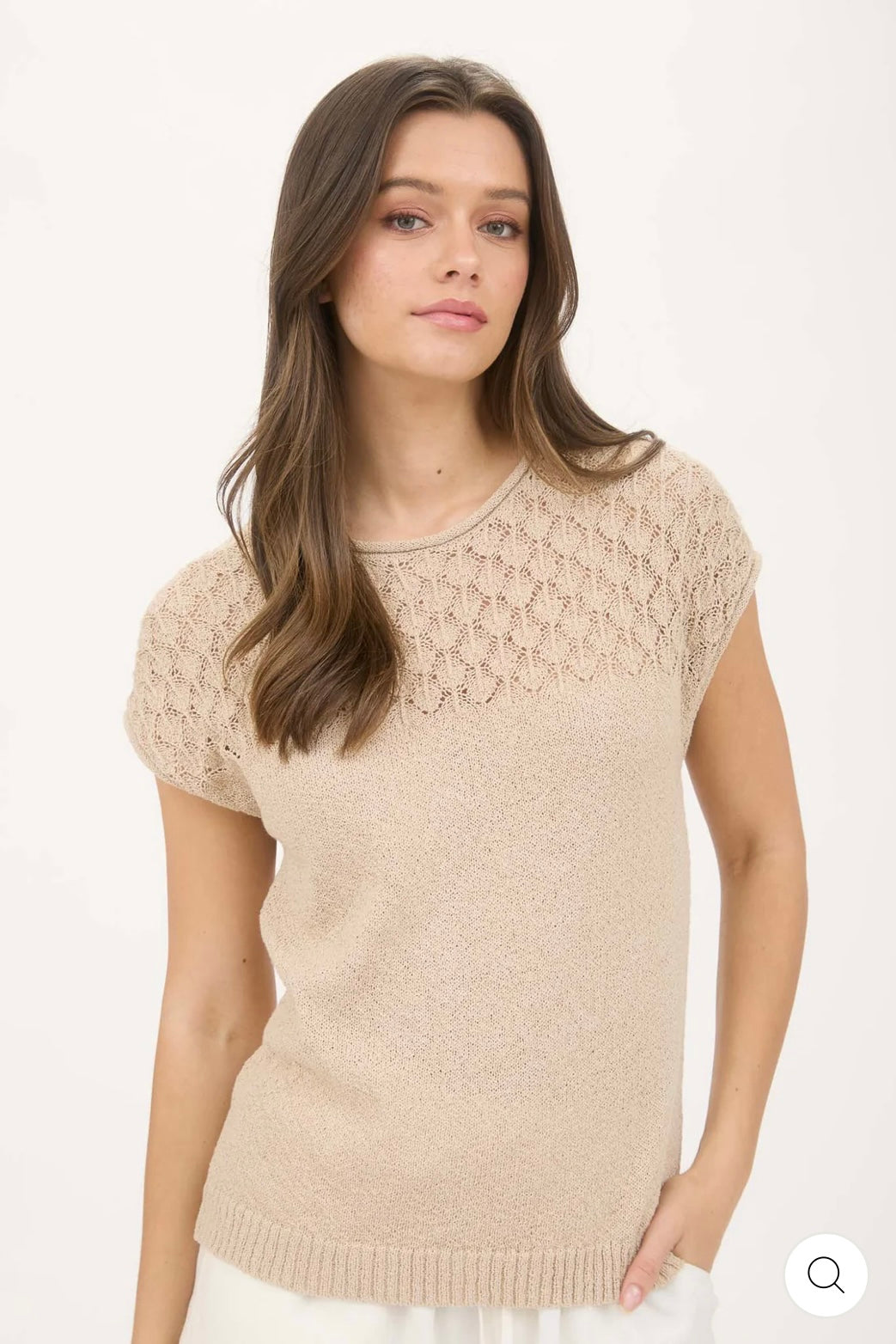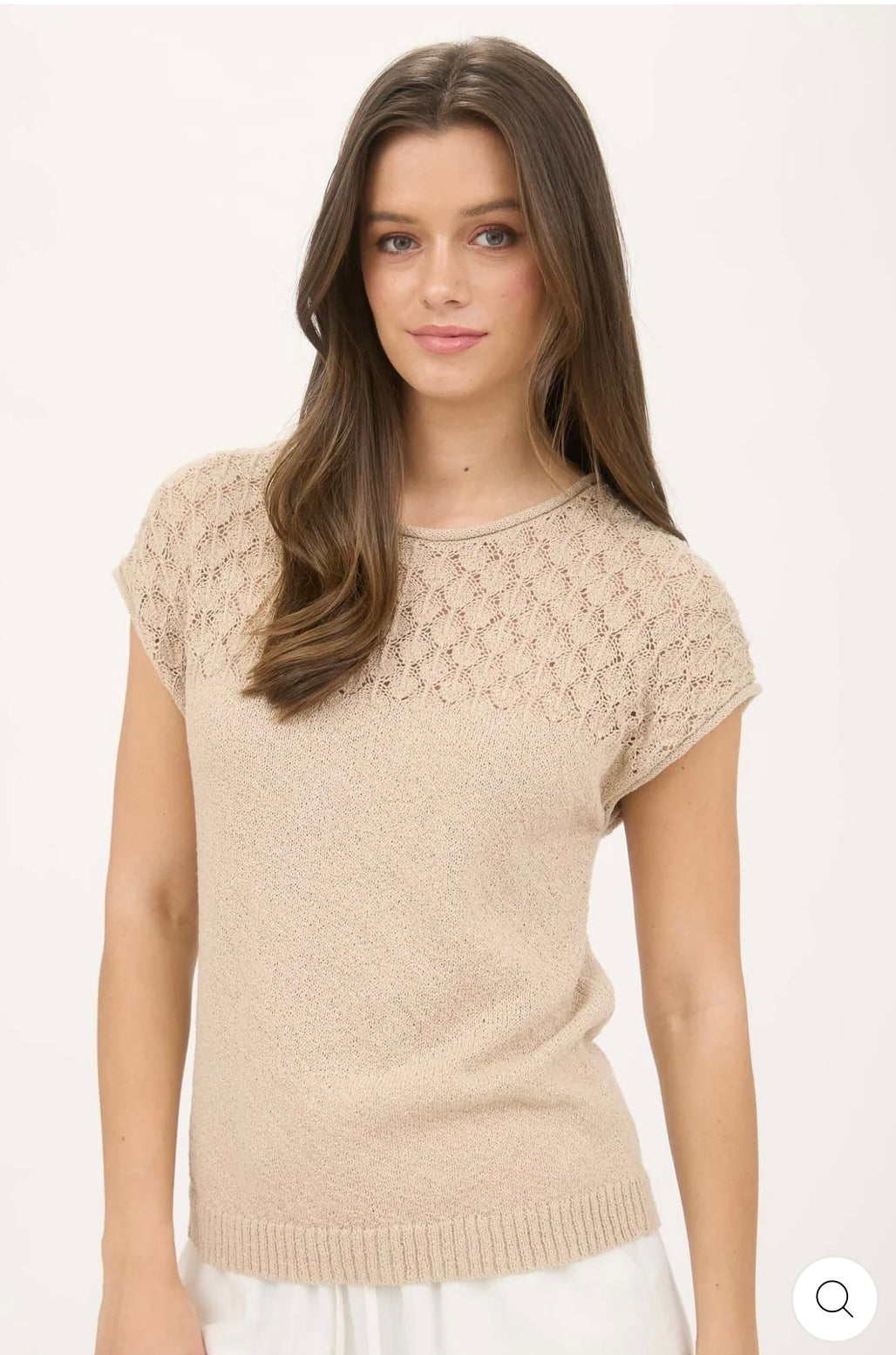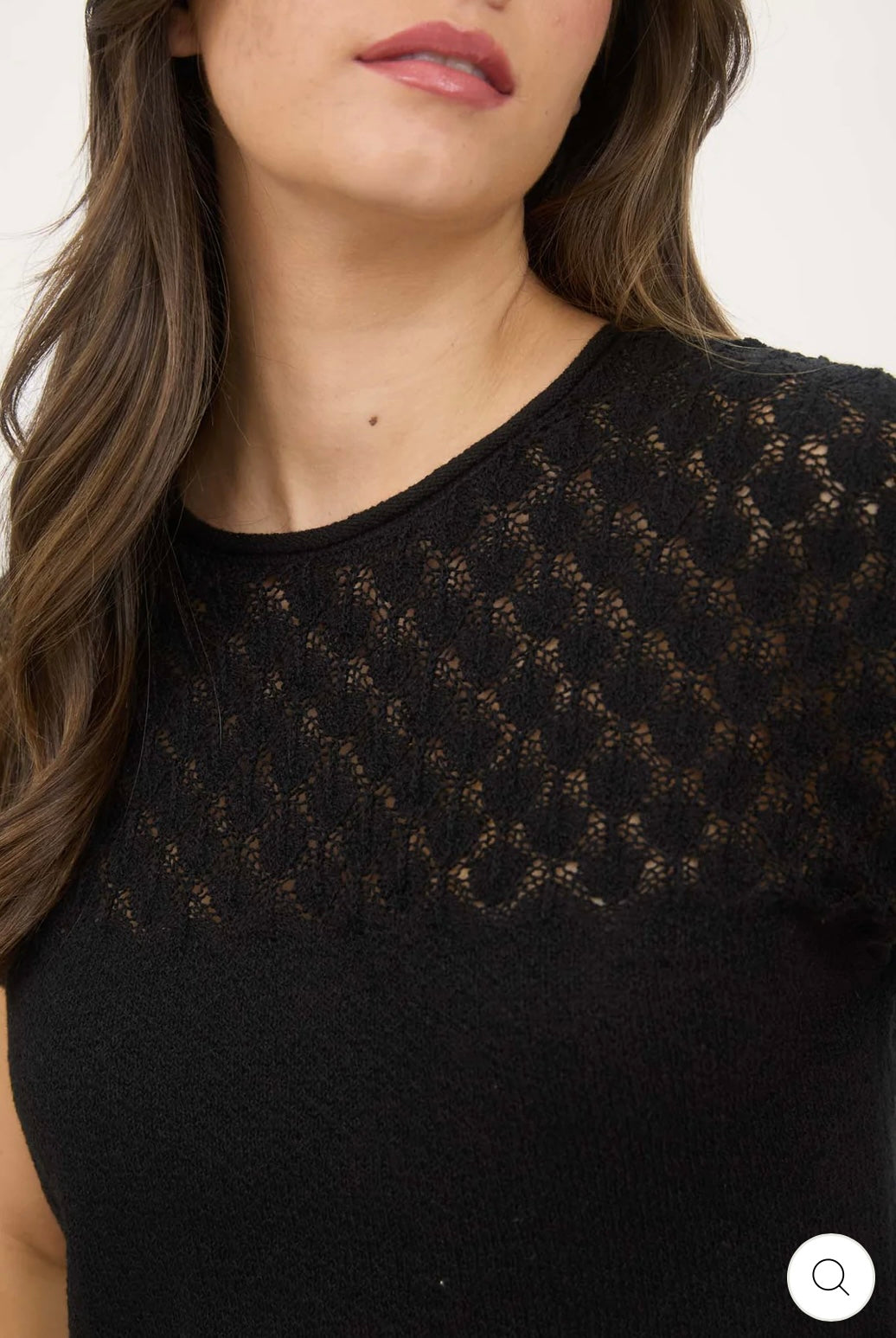 CR2194 EYELET YOKE SWEATER KNIT TOP