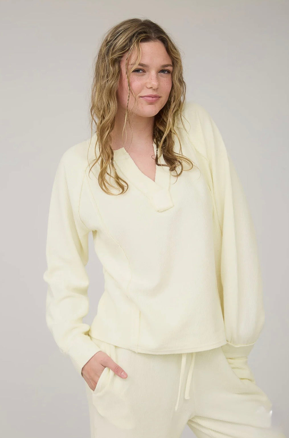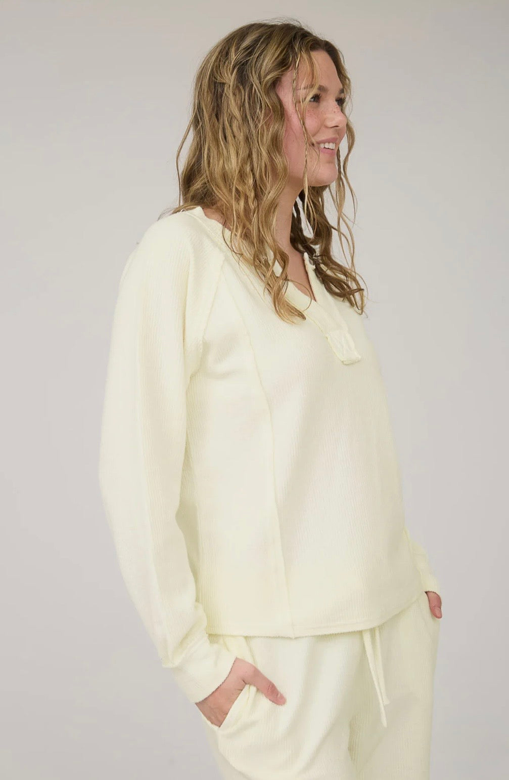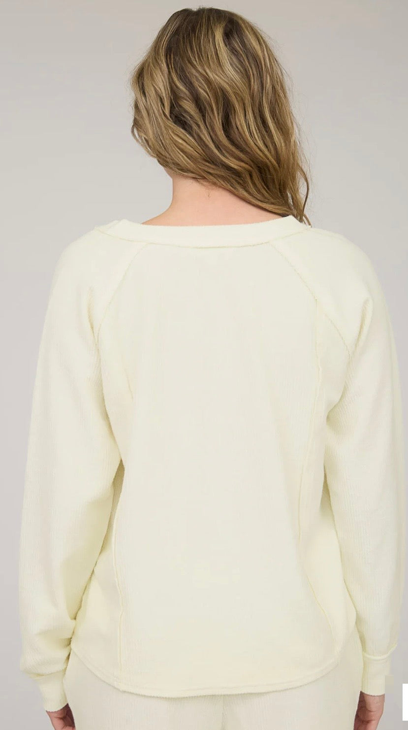 ACID WASHED RIBBED PATTERN TONES LOUNGE SET _Cream