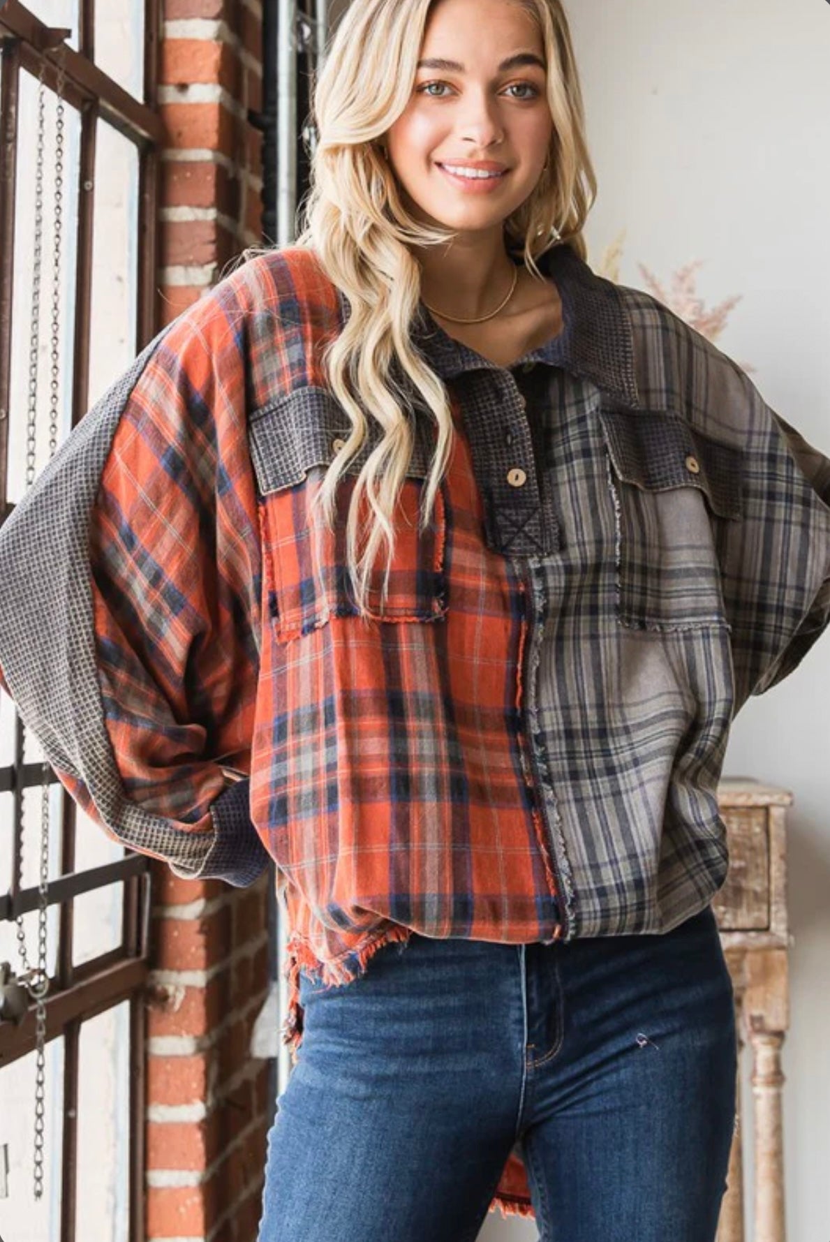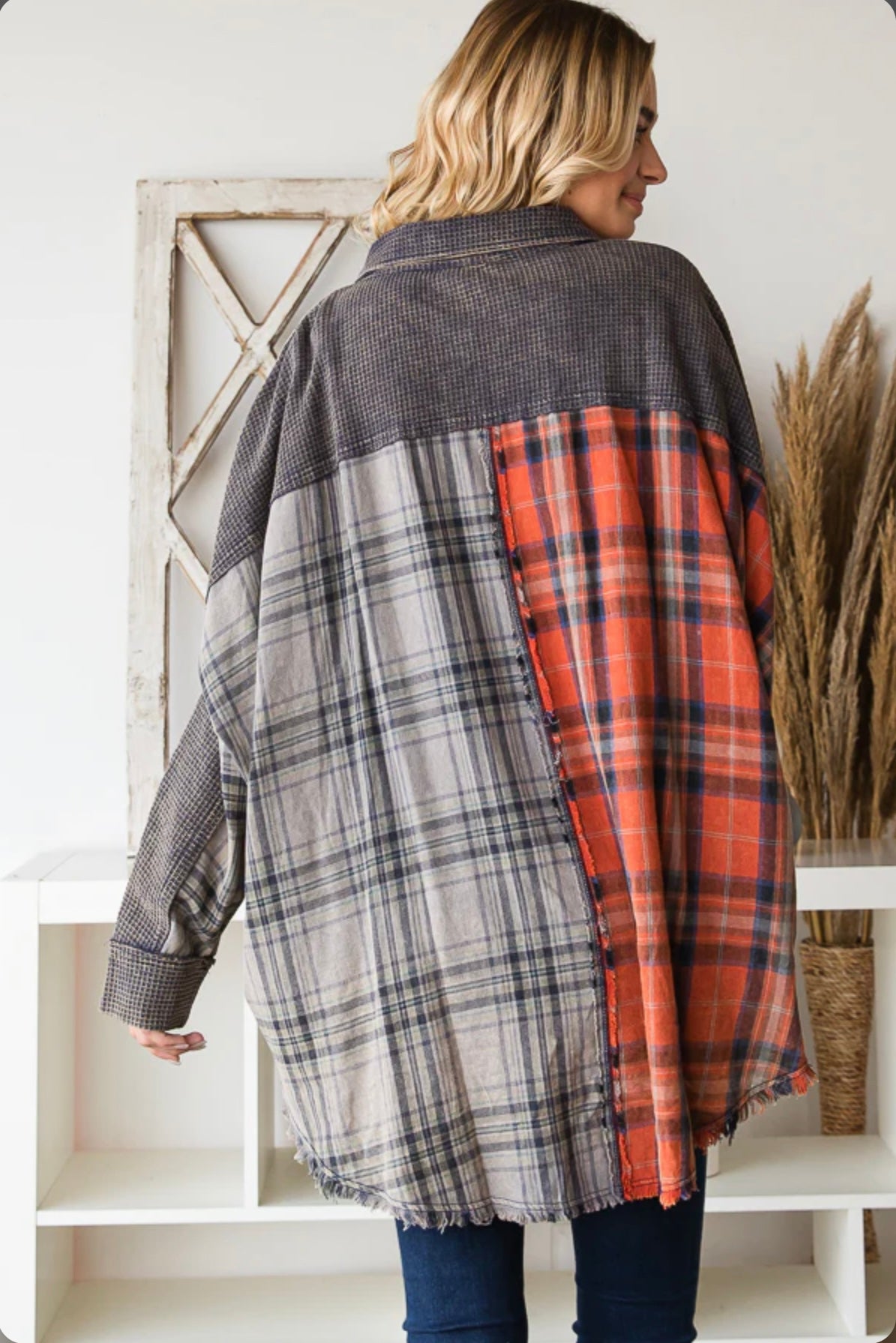 JT0008 WASHED FABRIC MIXED SHIRTS TOP
