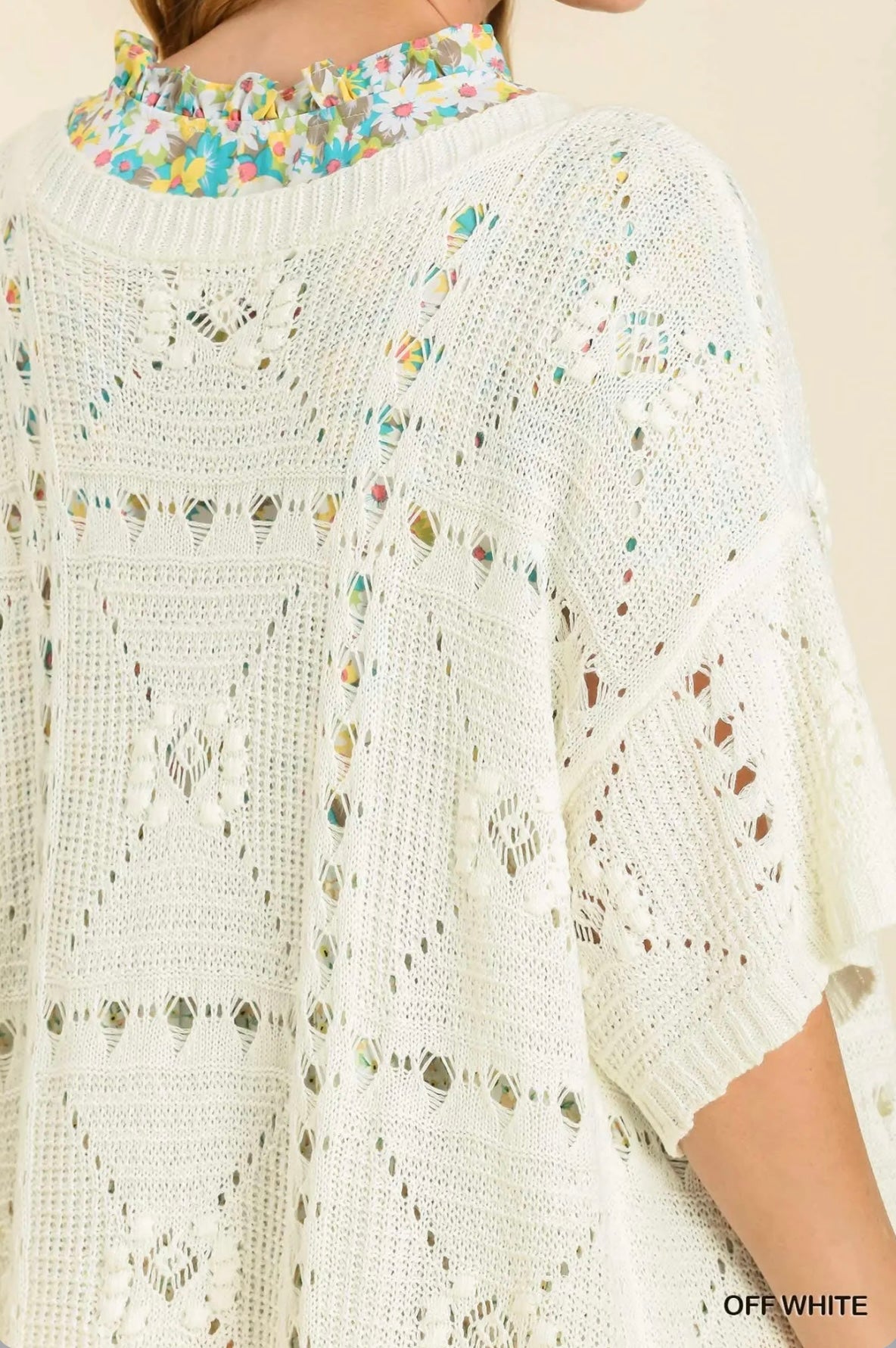 K6577 Off-White Crochet Knit Duster