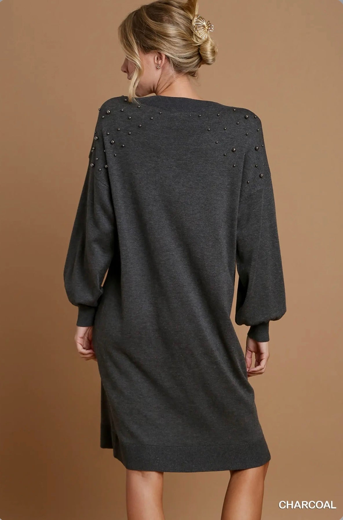 K7486 Pearl Round Neck Sweater Dress
