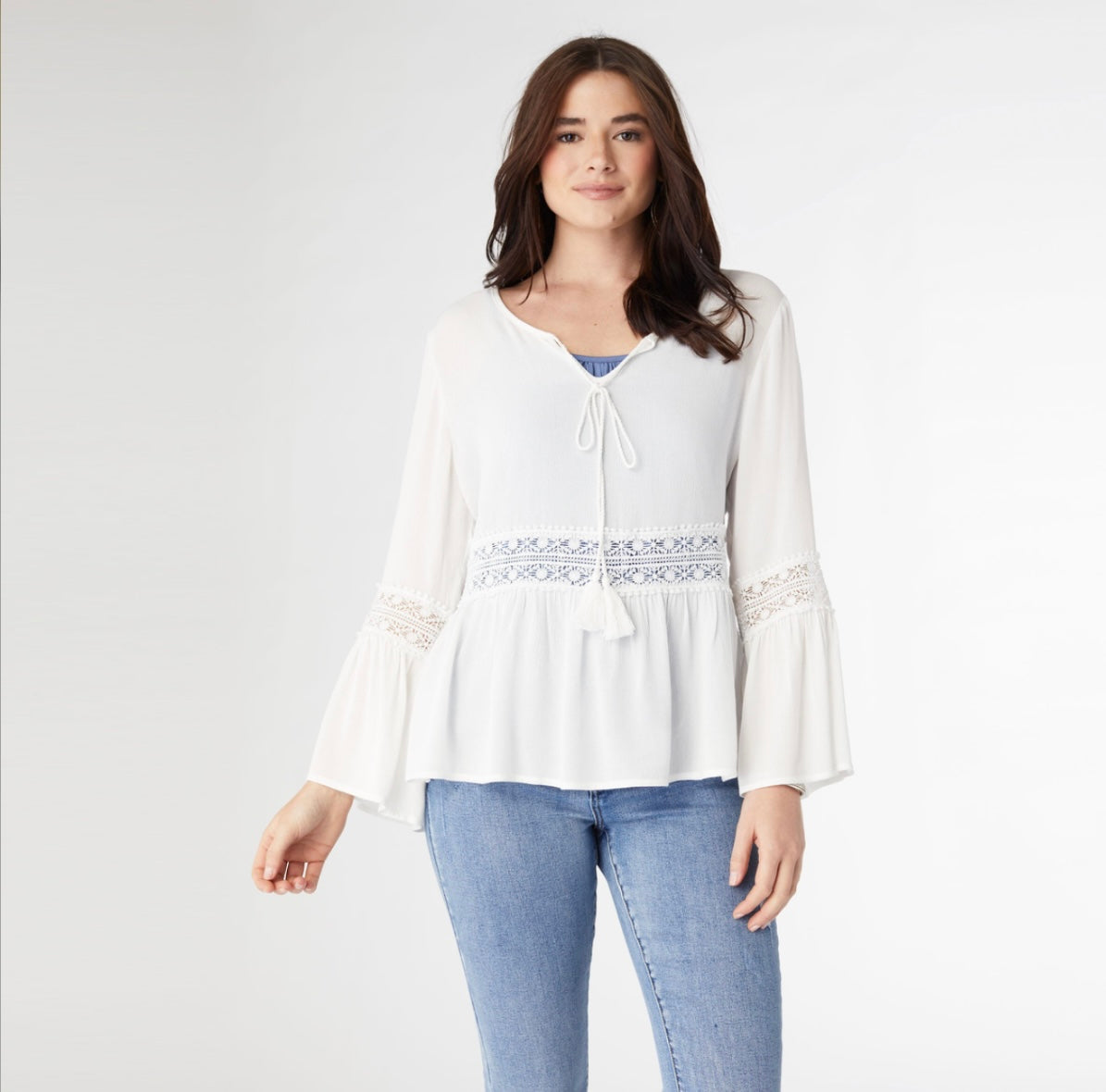 Stay on trend with the Kacie Top, a must-have piece with its flattering belle sleeves that exude effortless charm. Whether you're running errands or meeting up with friends, this top will keep you looking and feeling your best. Upgrade your closet with this stylish staple.