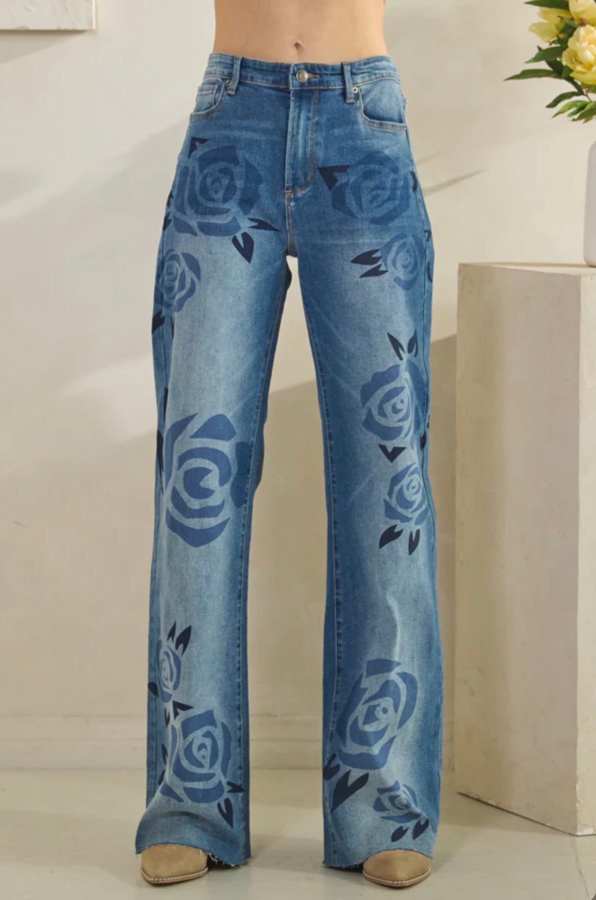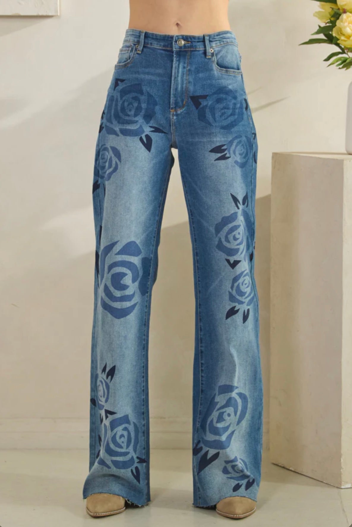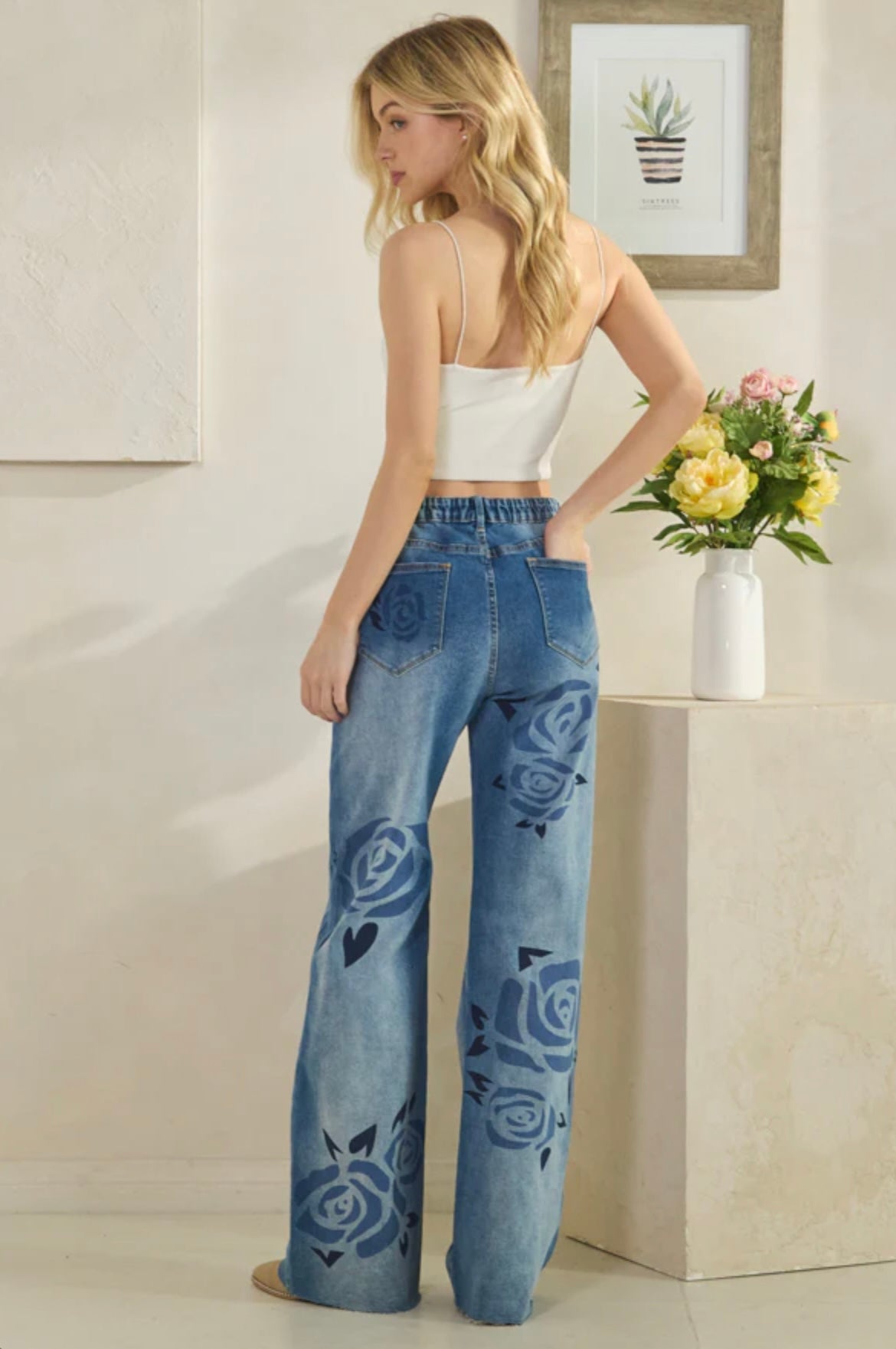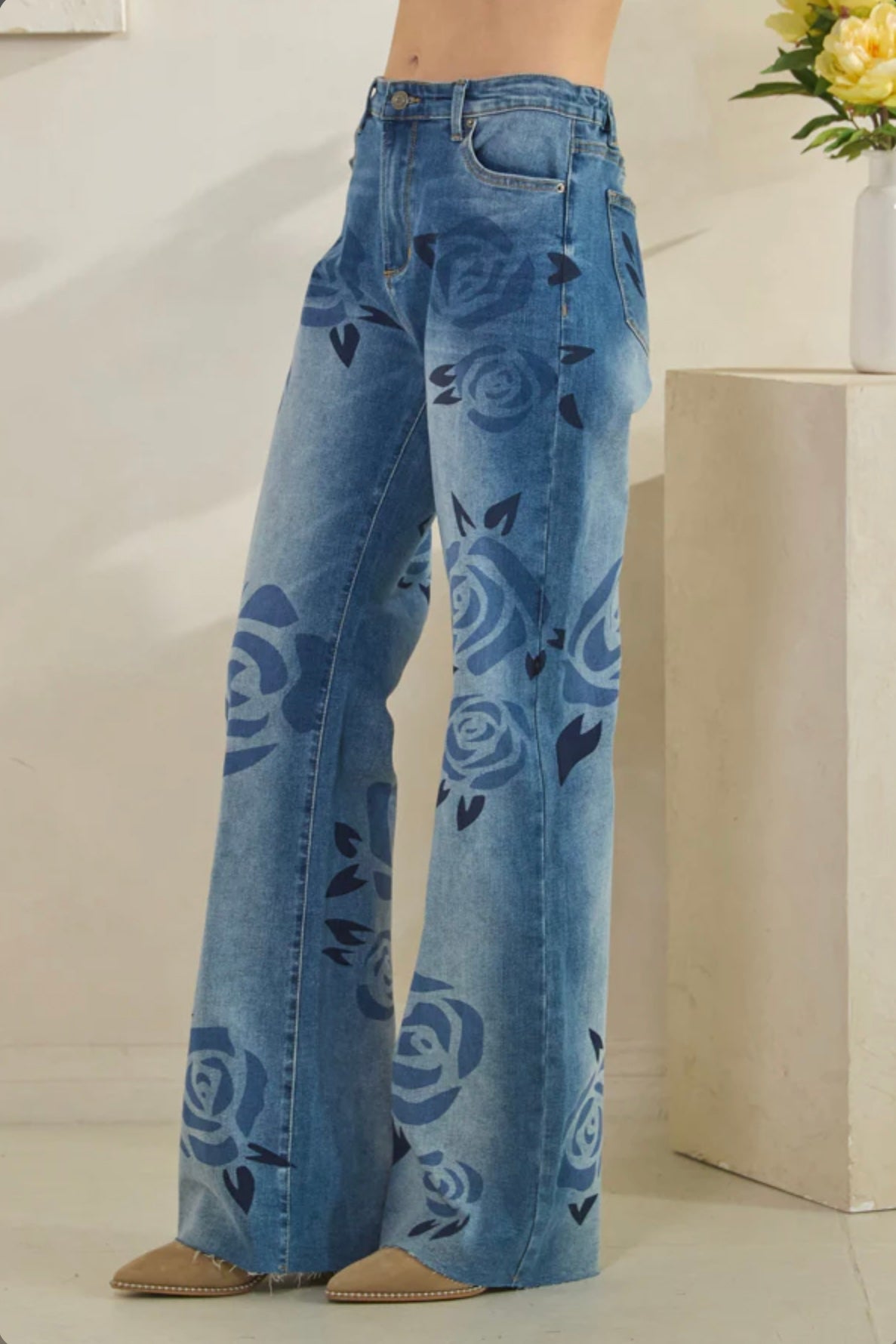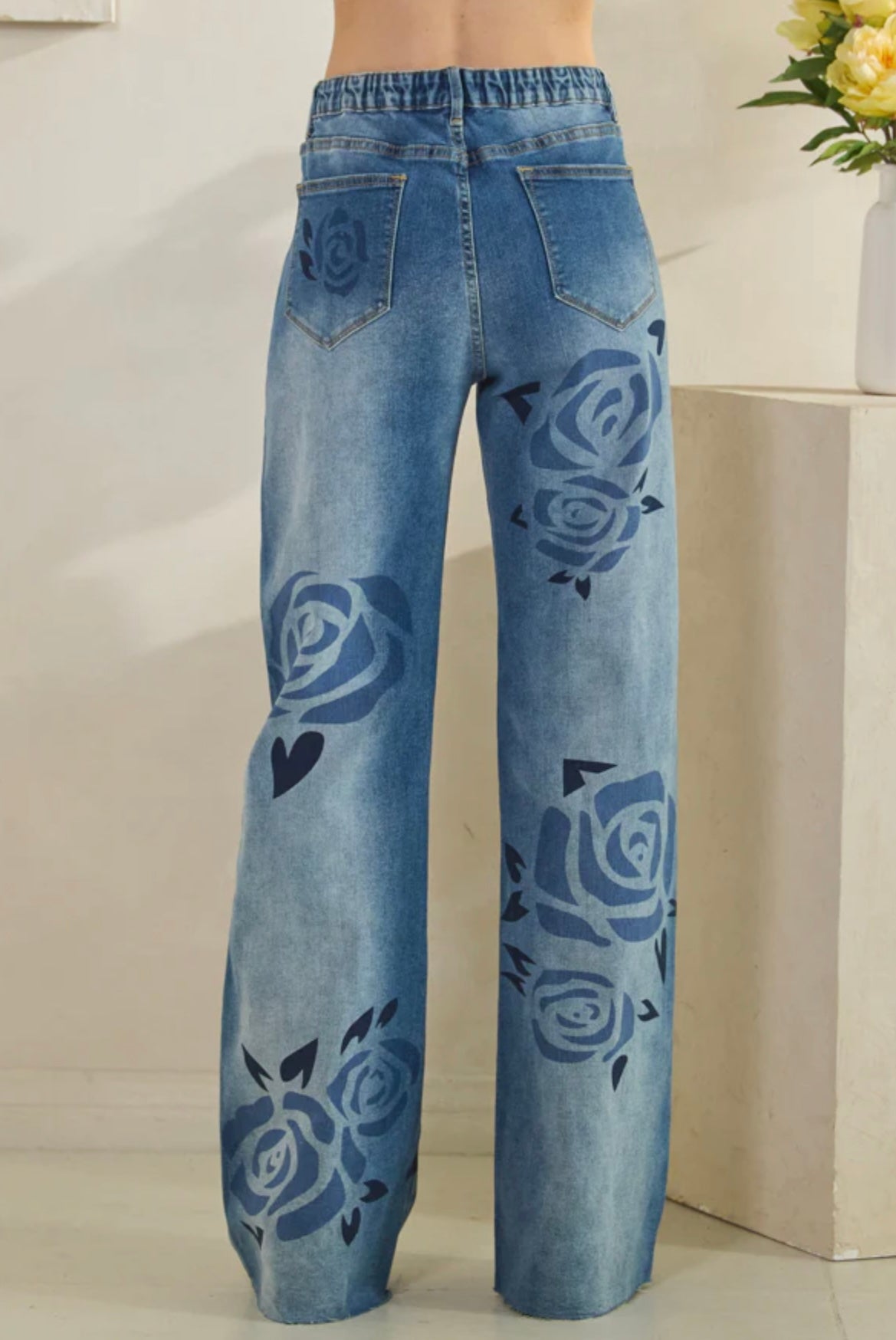 WASHED ROSE PRINT DETAIL MEDIUM WASH JEANS