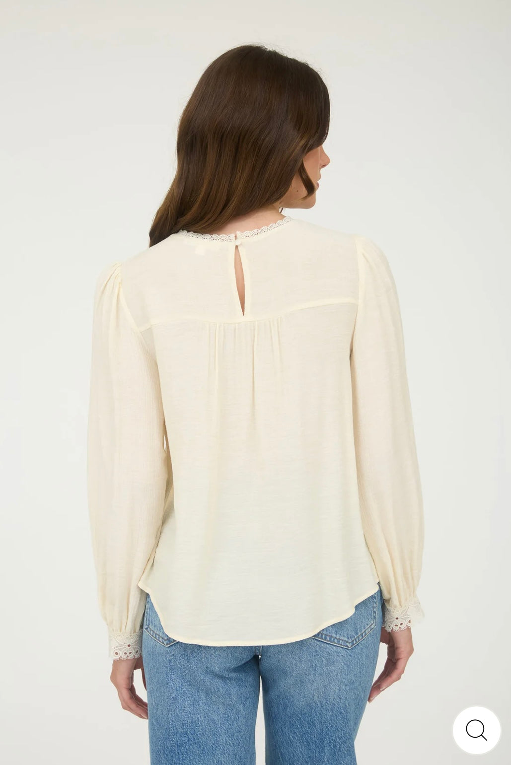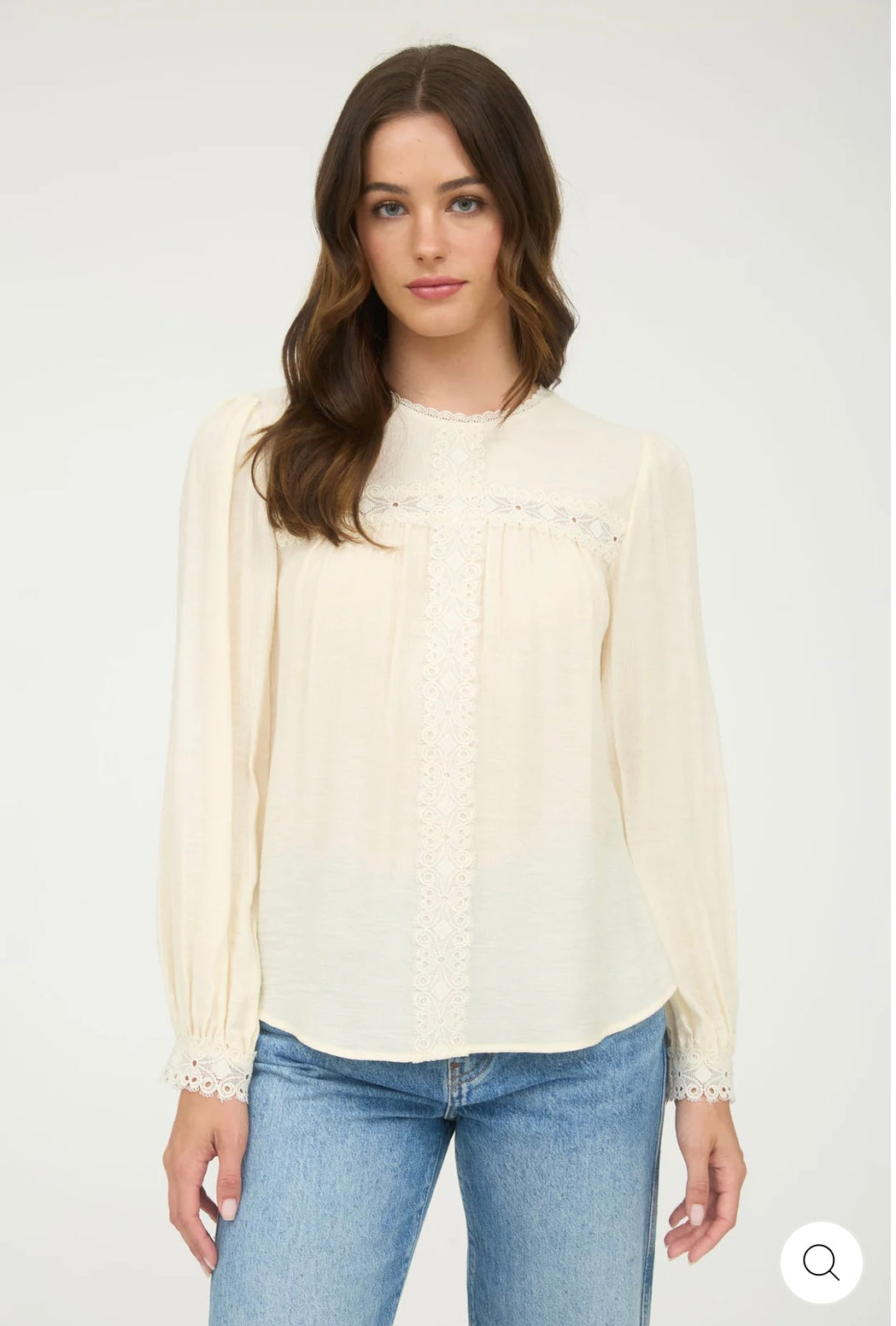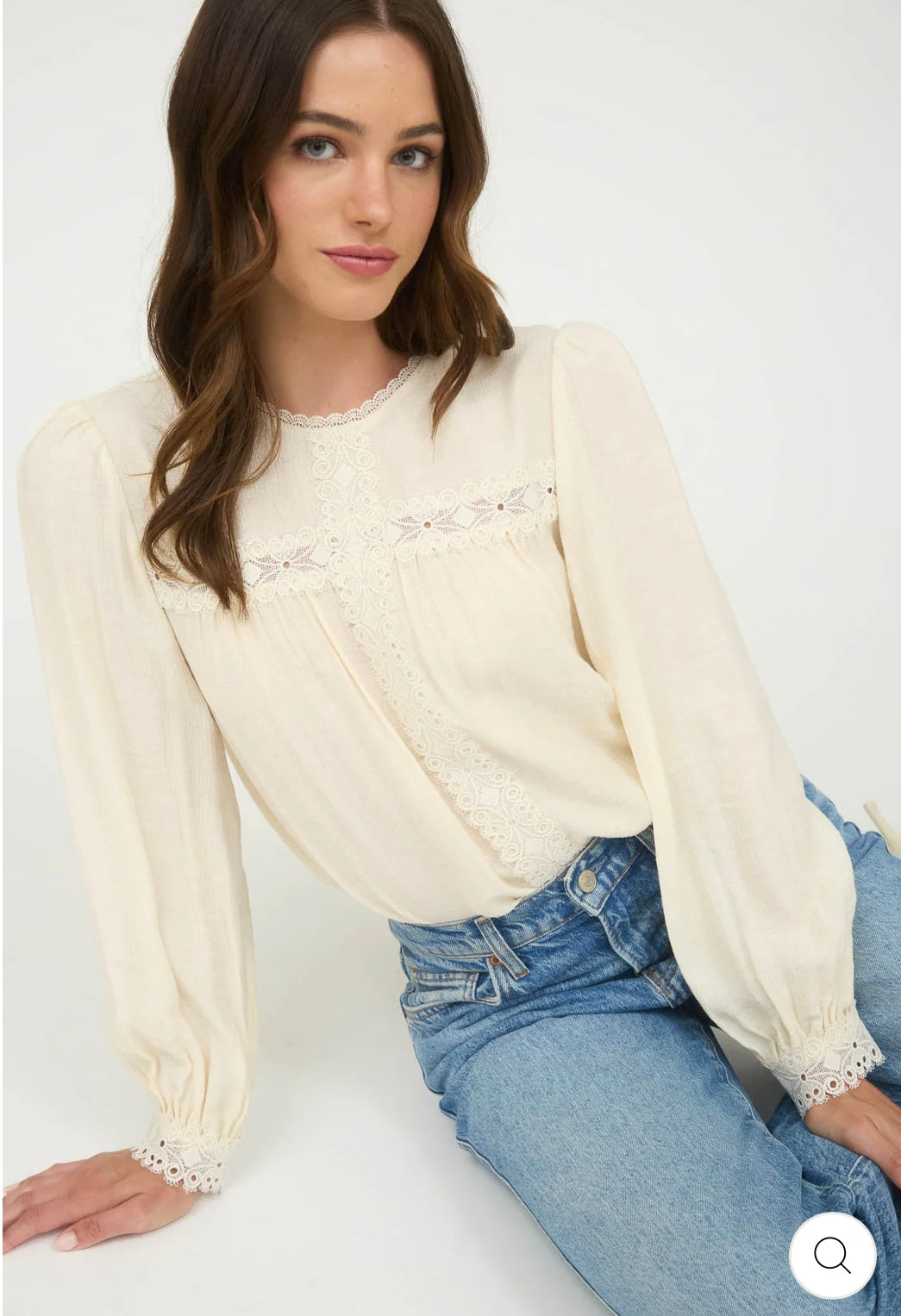 TB8969 LACE DETAIL ROUND NECK LONG SLEEVE BLOUSE