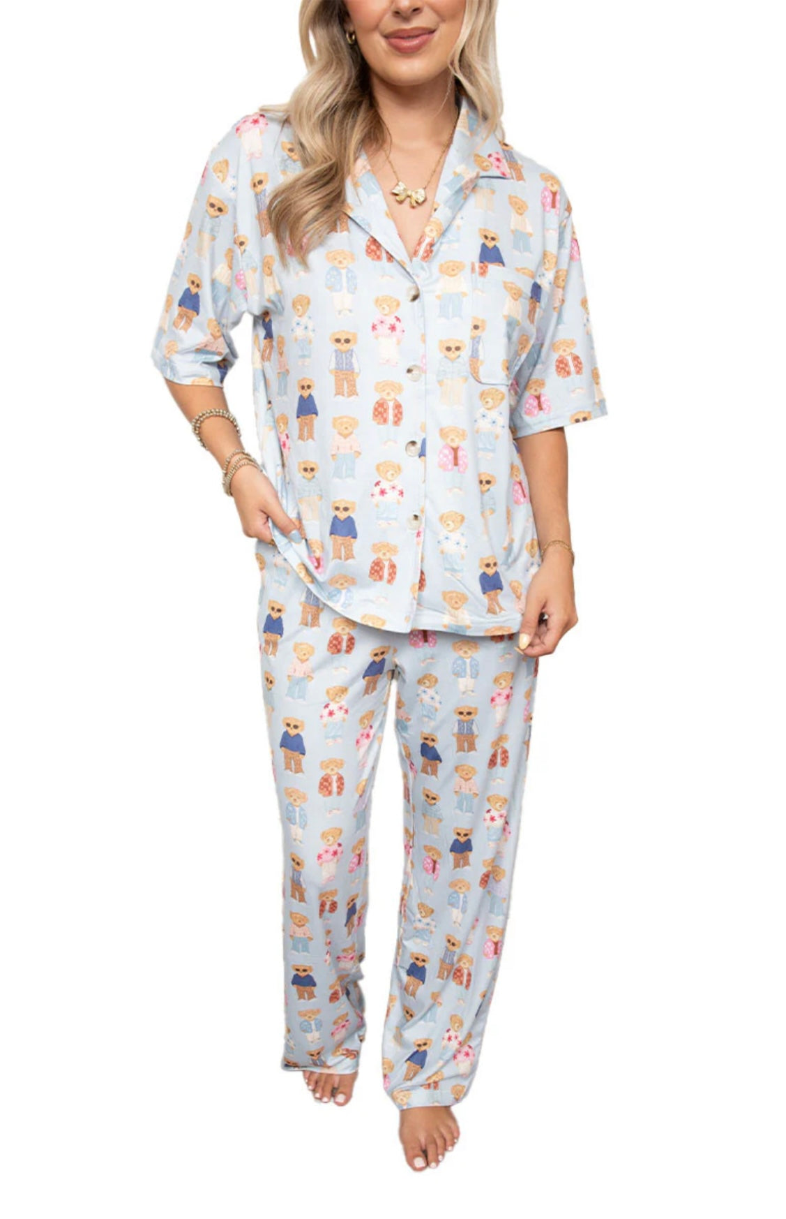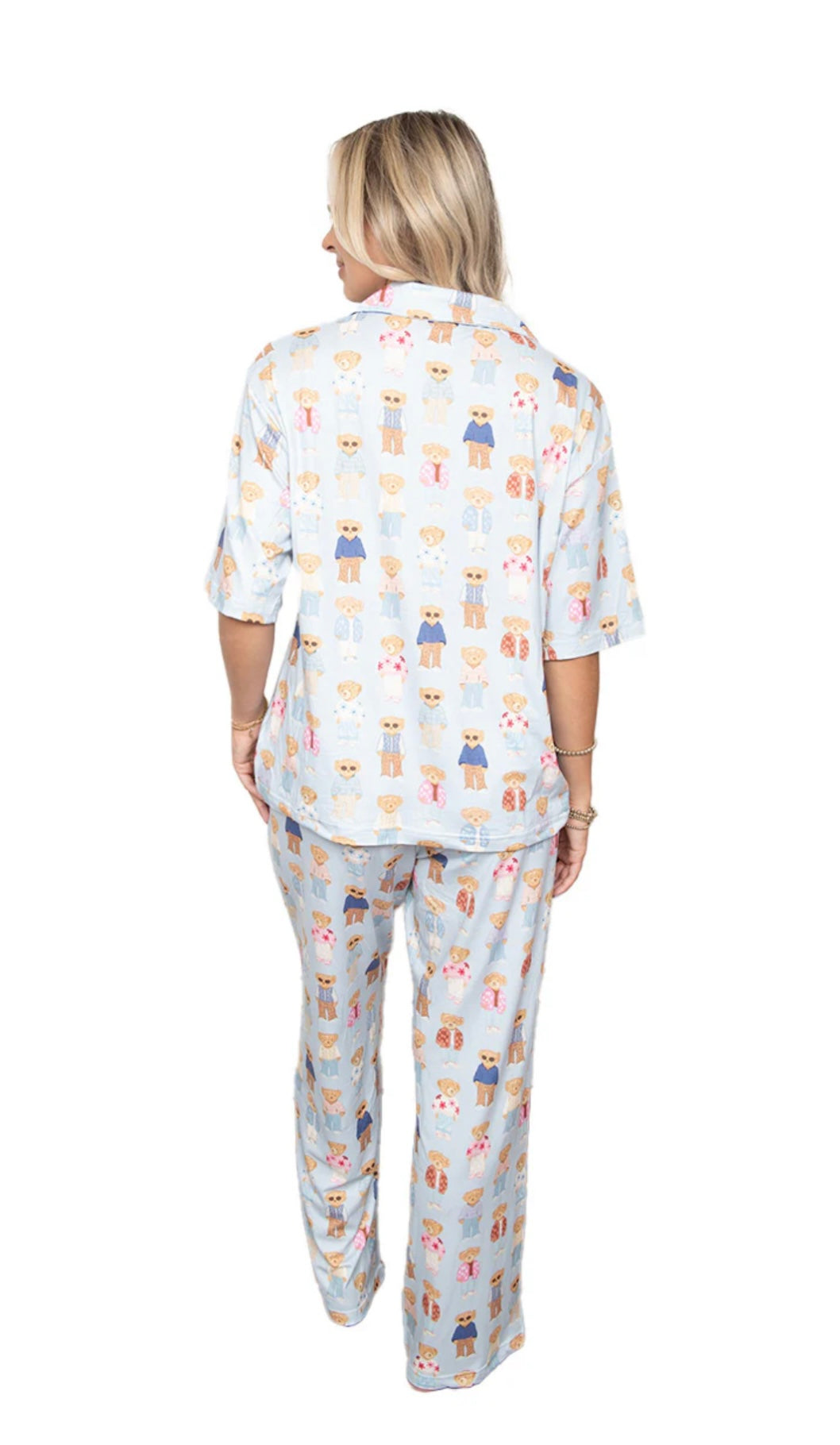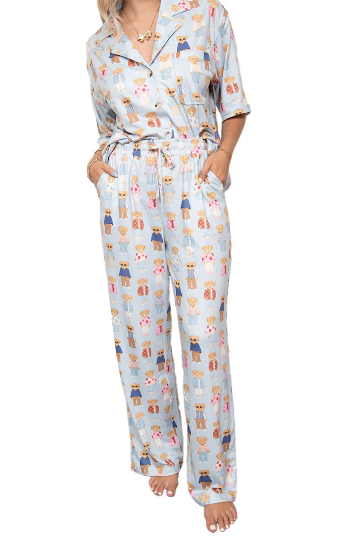 This adorable PJ Pant Set is all about the cozy feels. Covered in a charming teddy bear print, this set is a dream come true for those who love their women’s pajamas as cute as they are comfy. Designed true to size, the button-up top includes a front pocket, while the pants feature an elastic waistband and, yes—pockets!