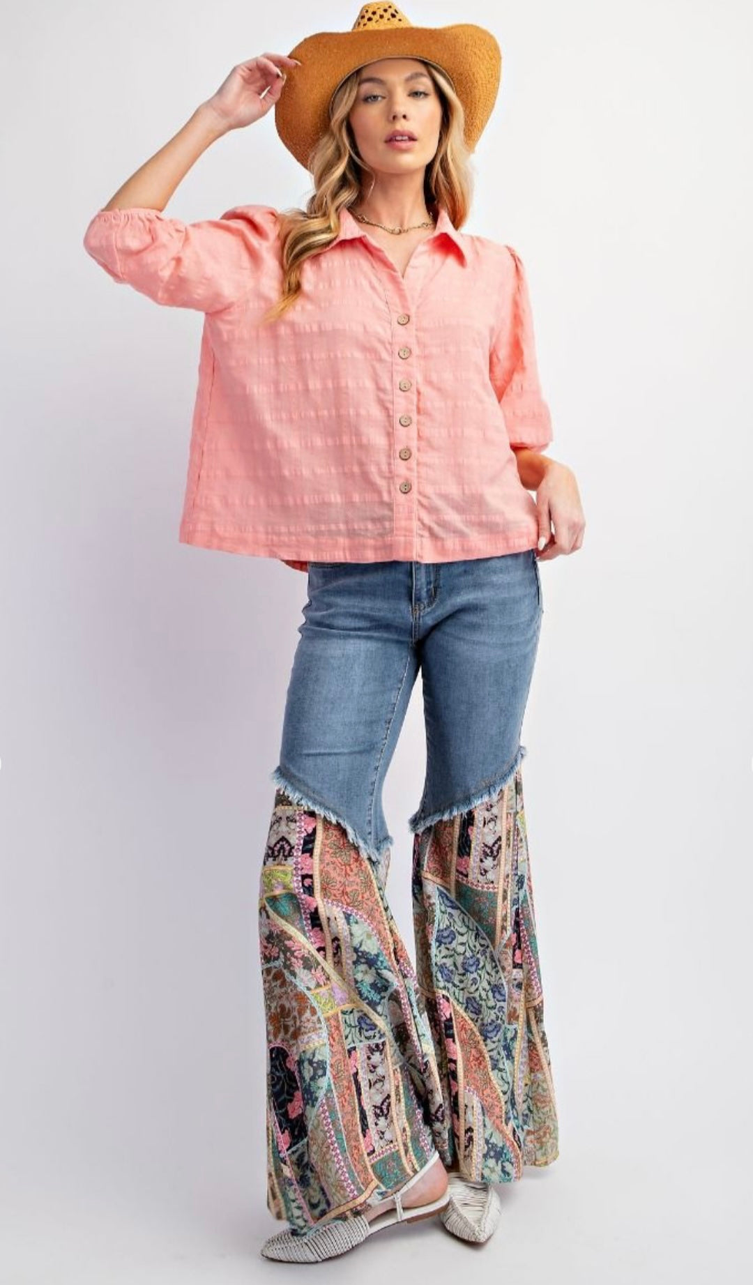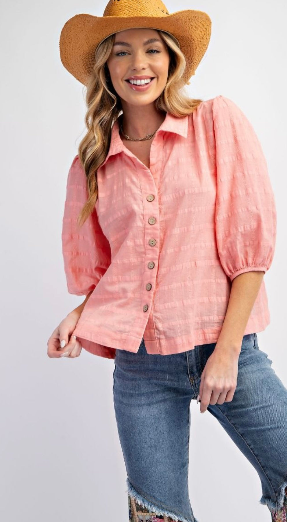 ET70338 TEXTURED VOILE BUTTON DOWN SHIRT -CORAL