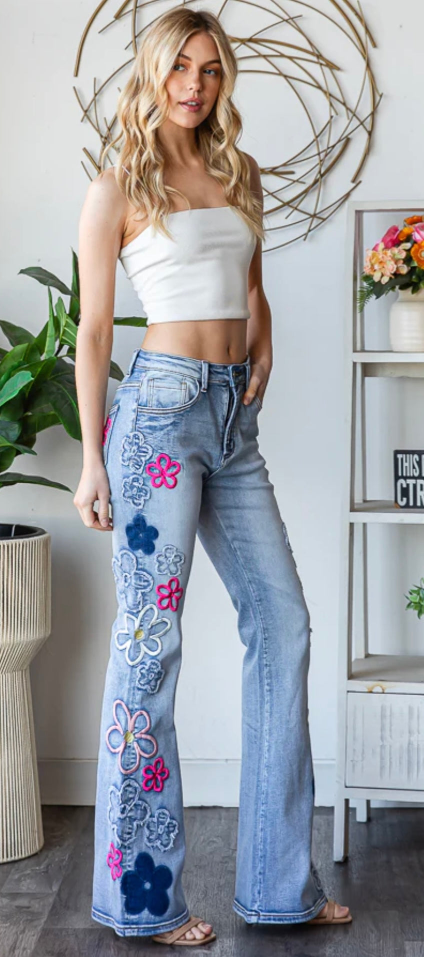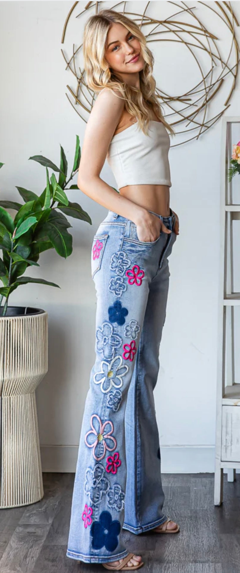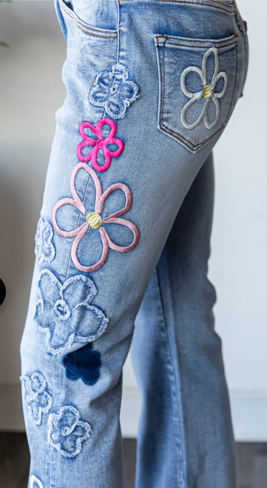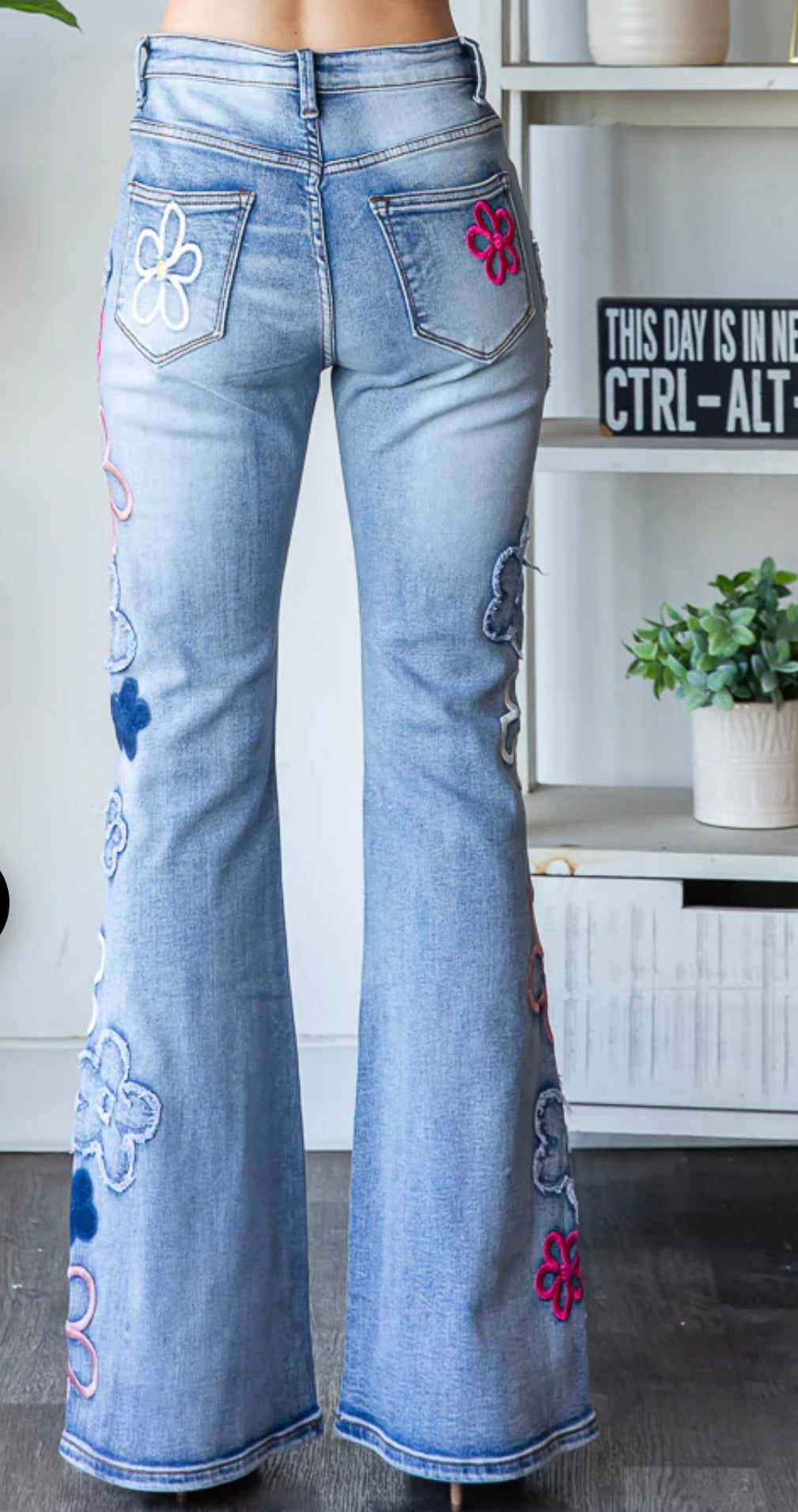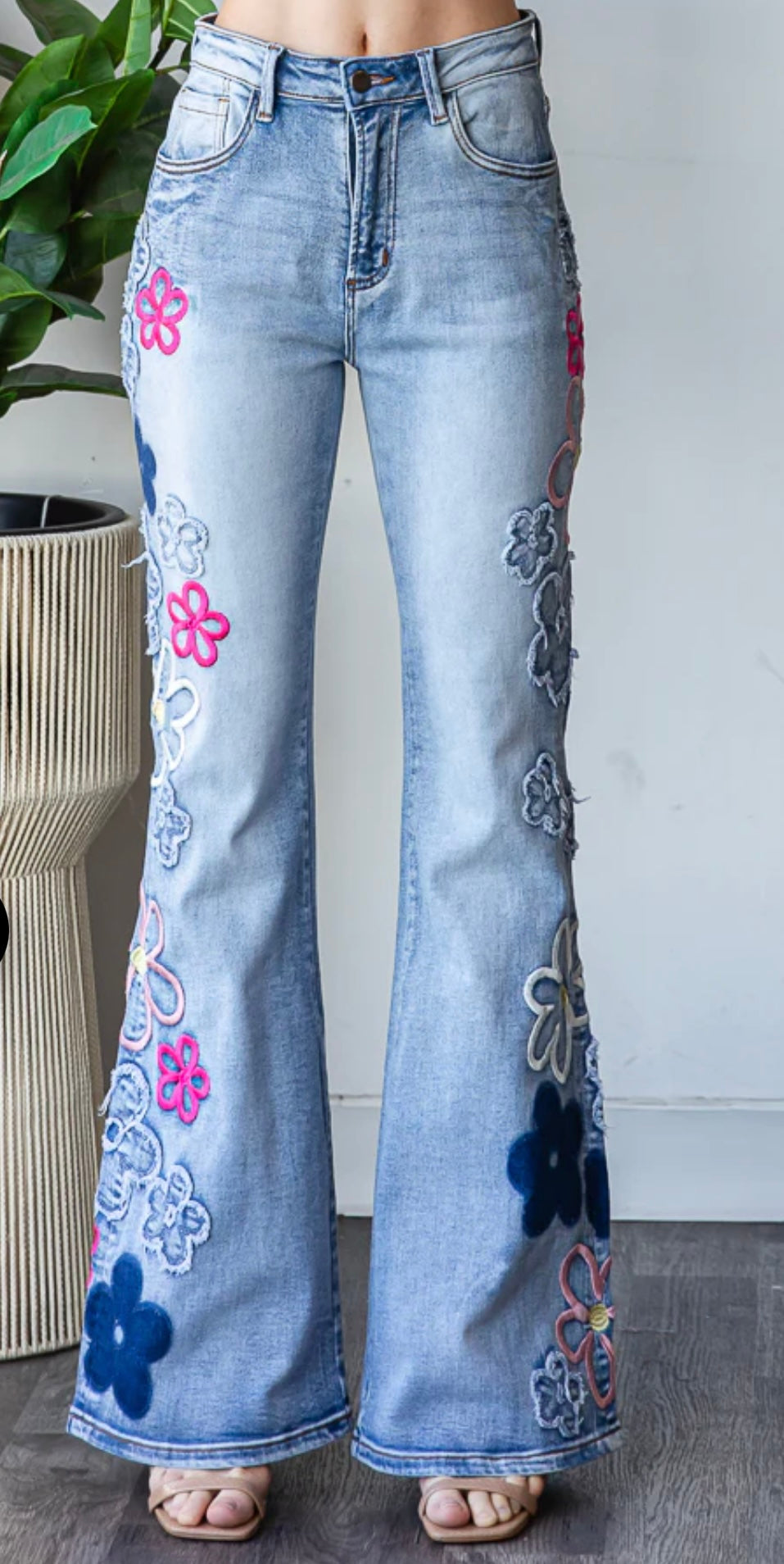 RESTOCKED- JP0810 Washed Flowered Embroidery Flare Jeans