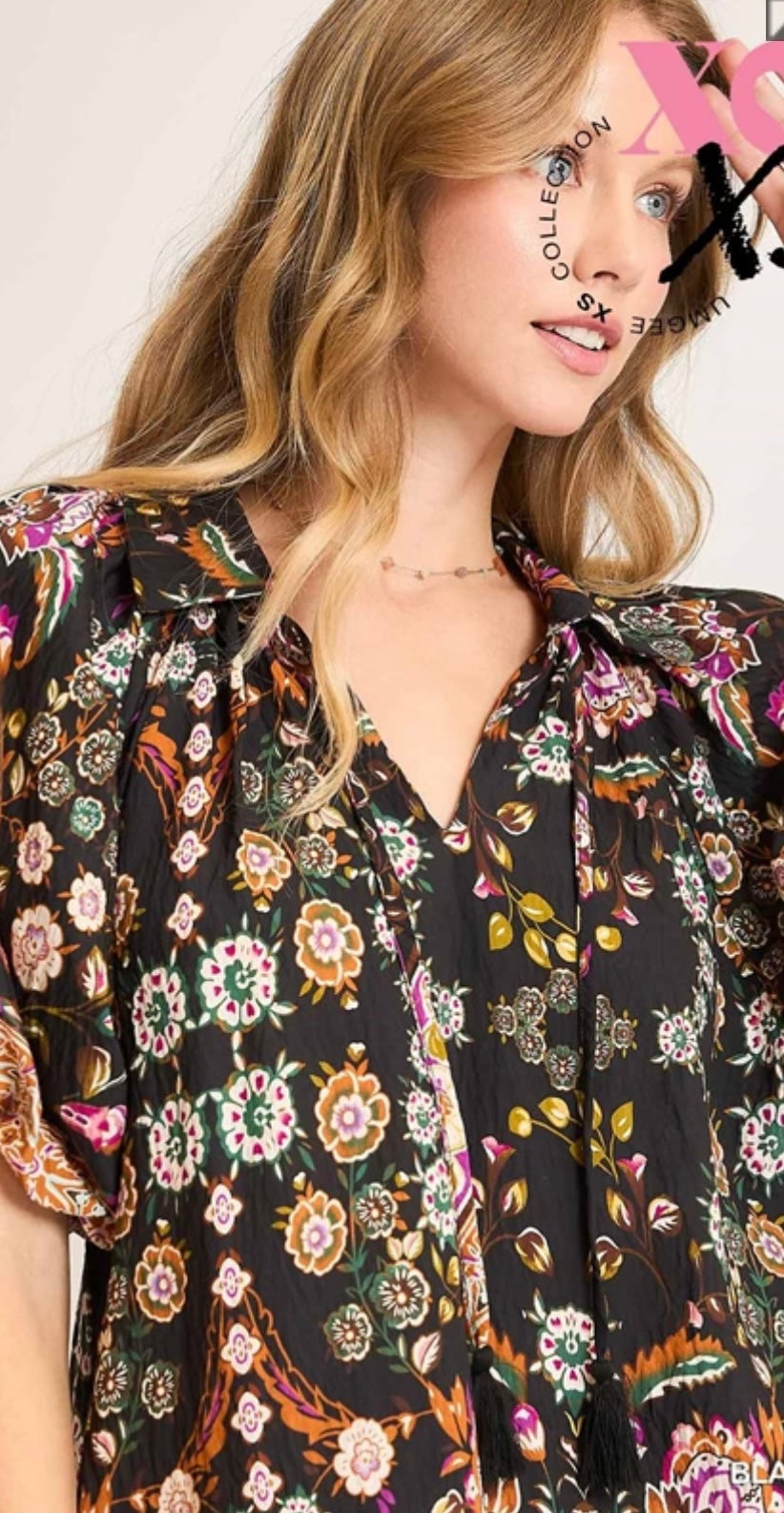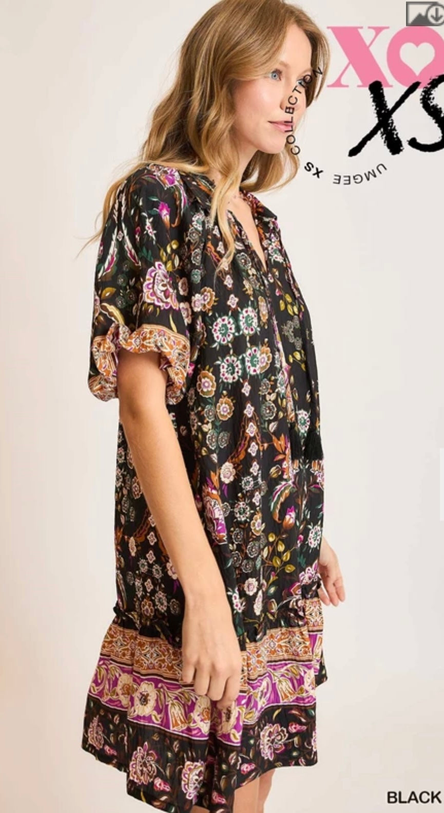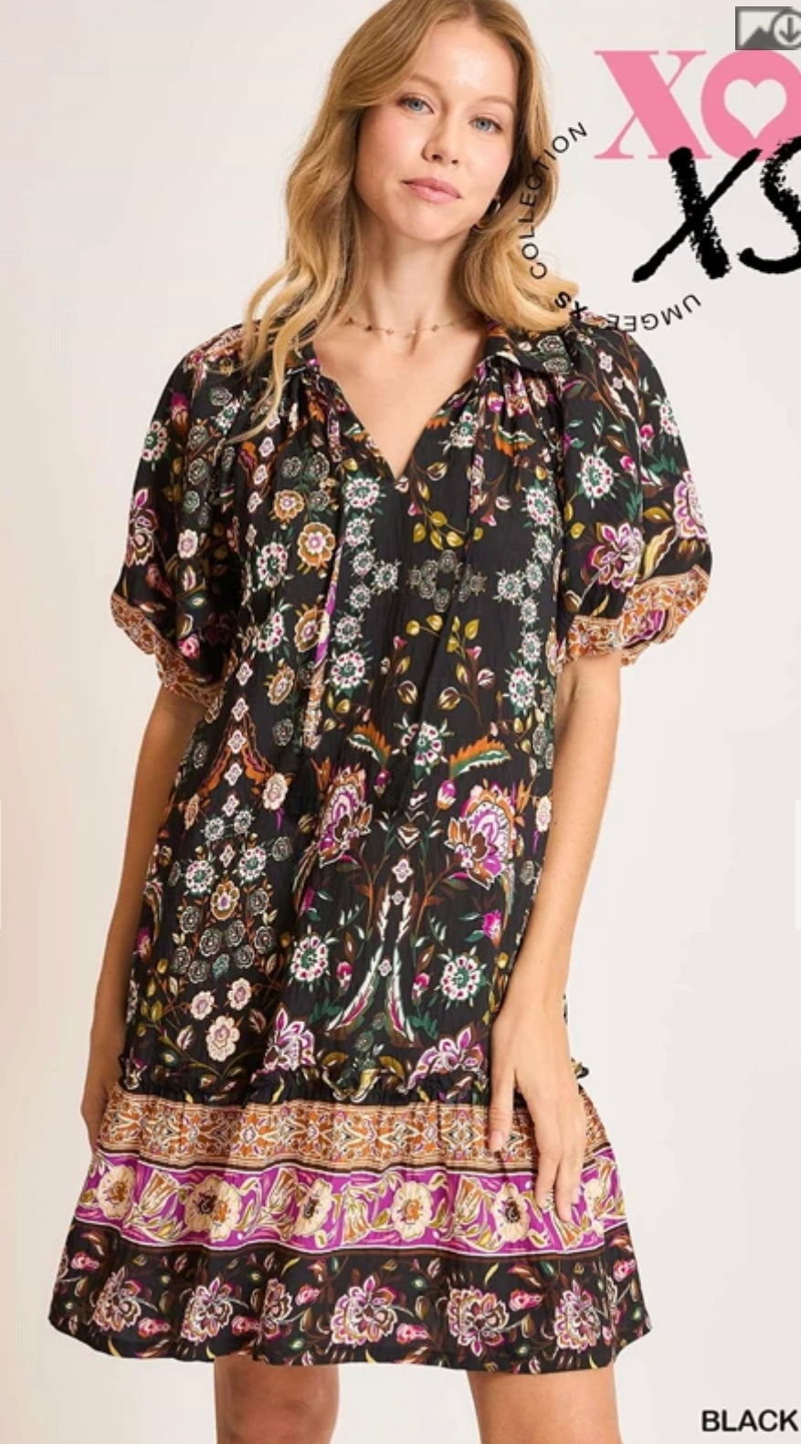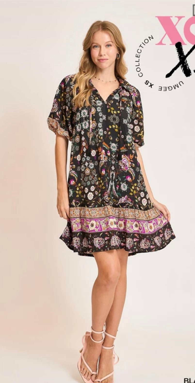 XS5092 Boho Chic Black Mix Floral Mini Dress