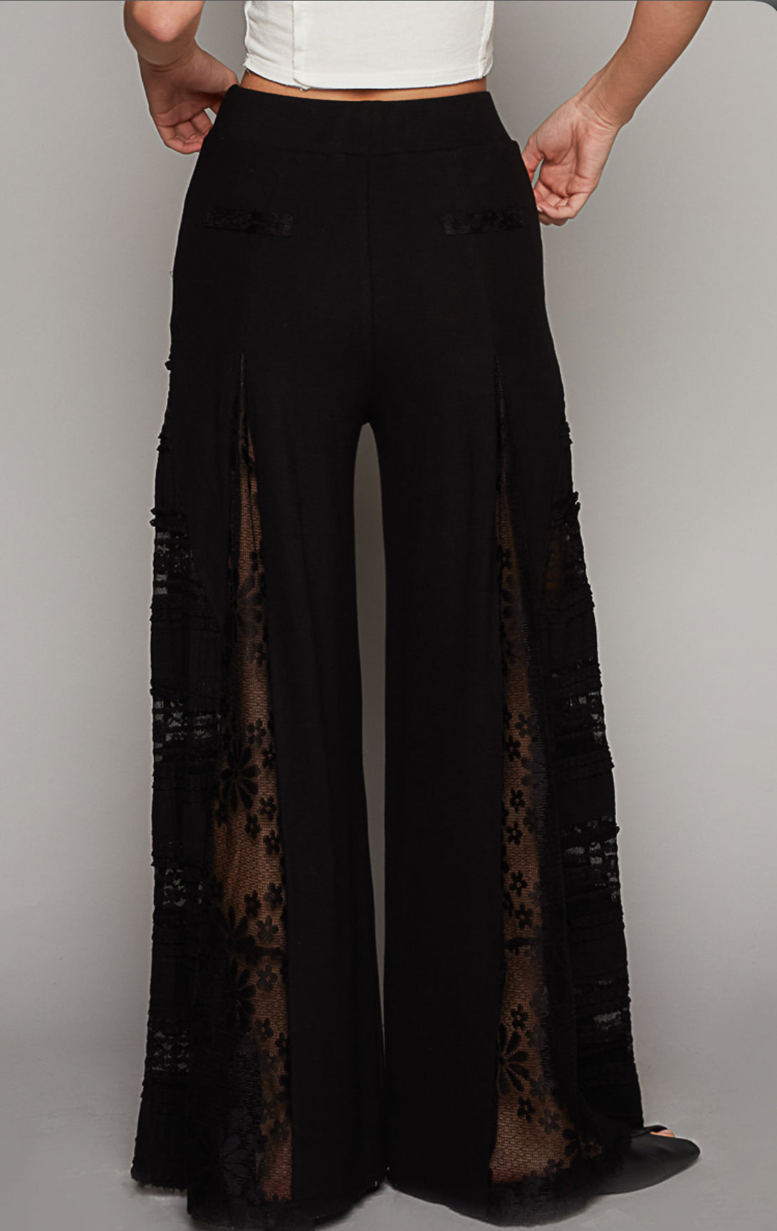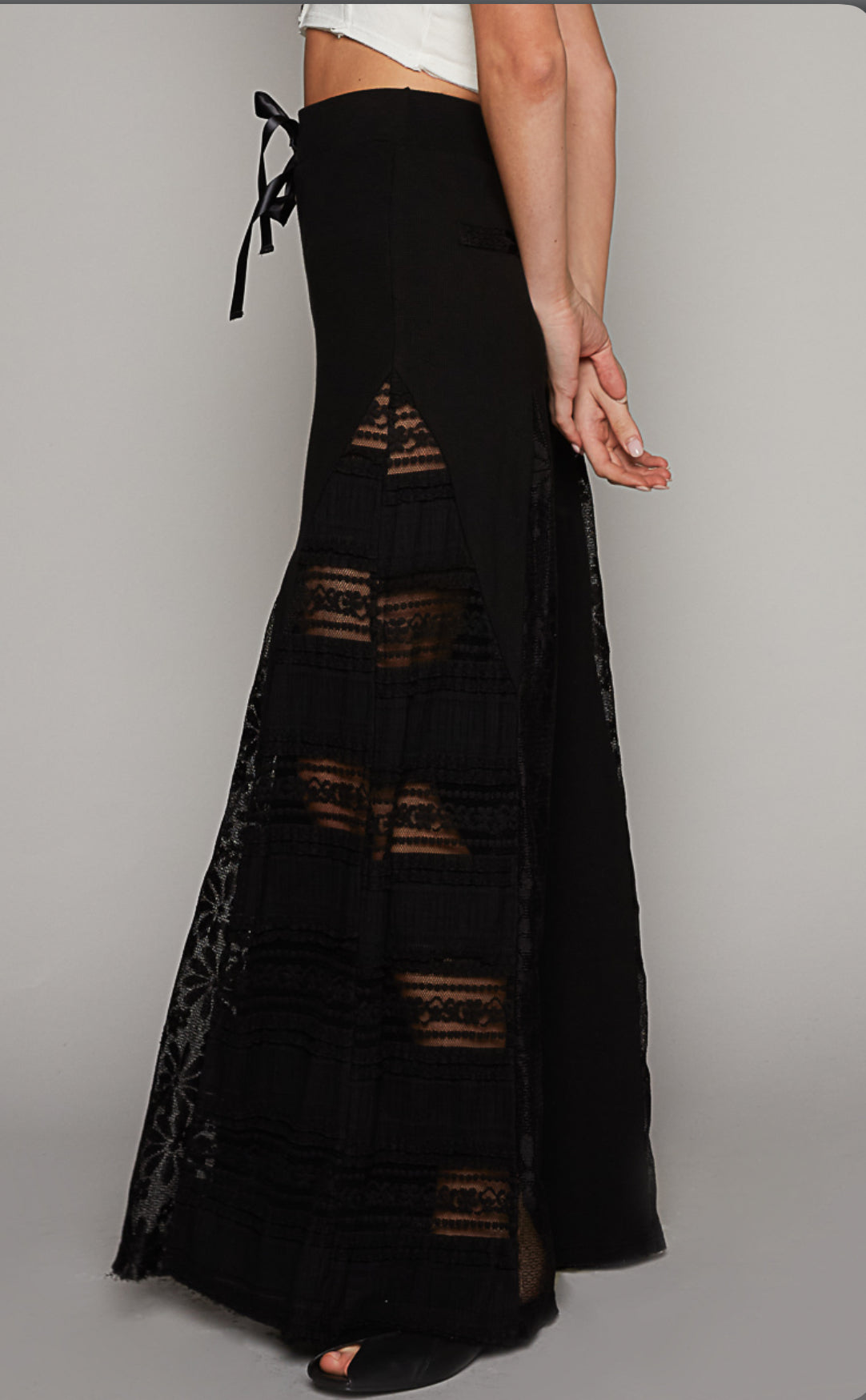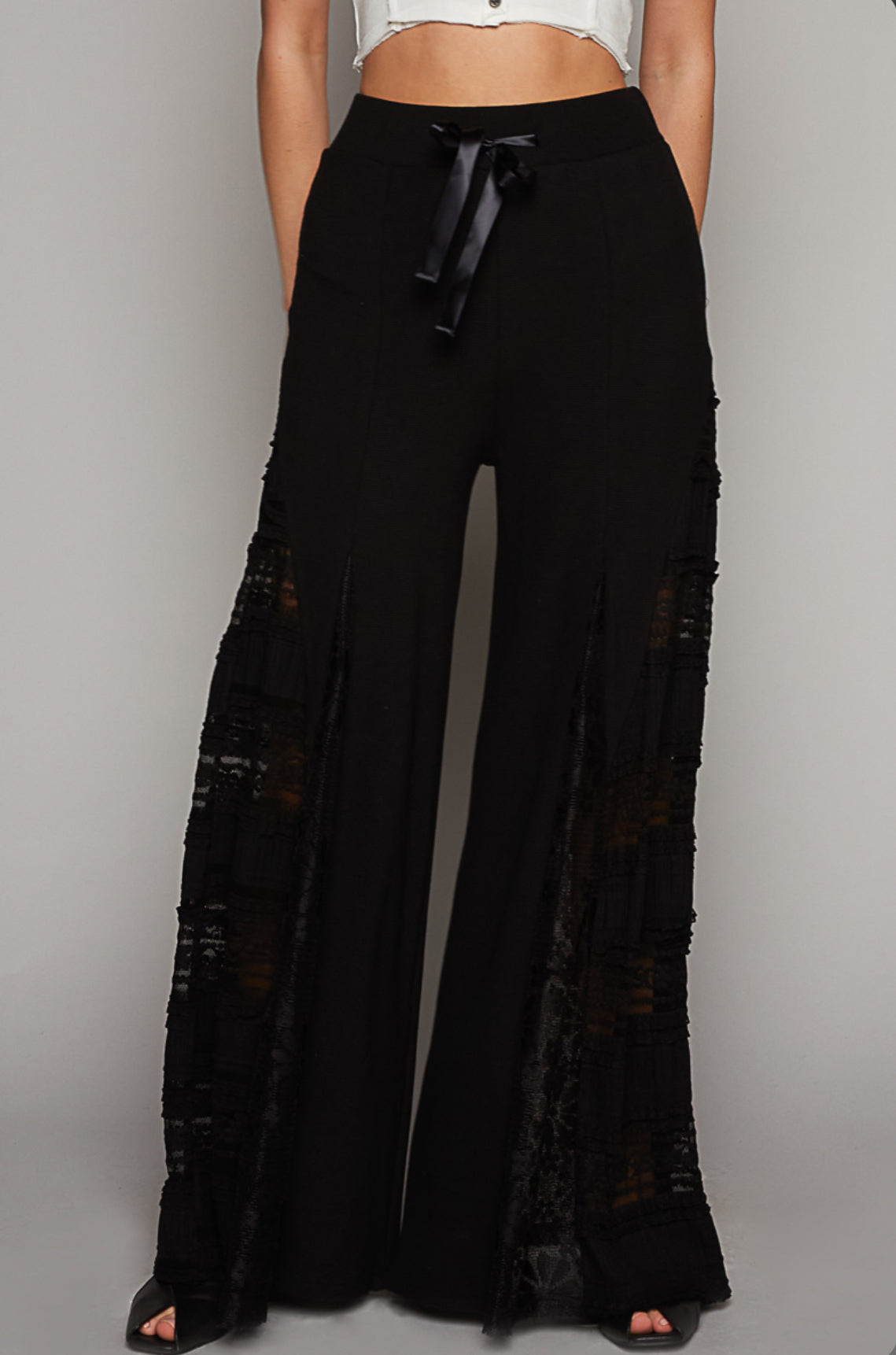 Designed in wide pants, thermal and lace mix with satin tie detail pointed solid pattern.